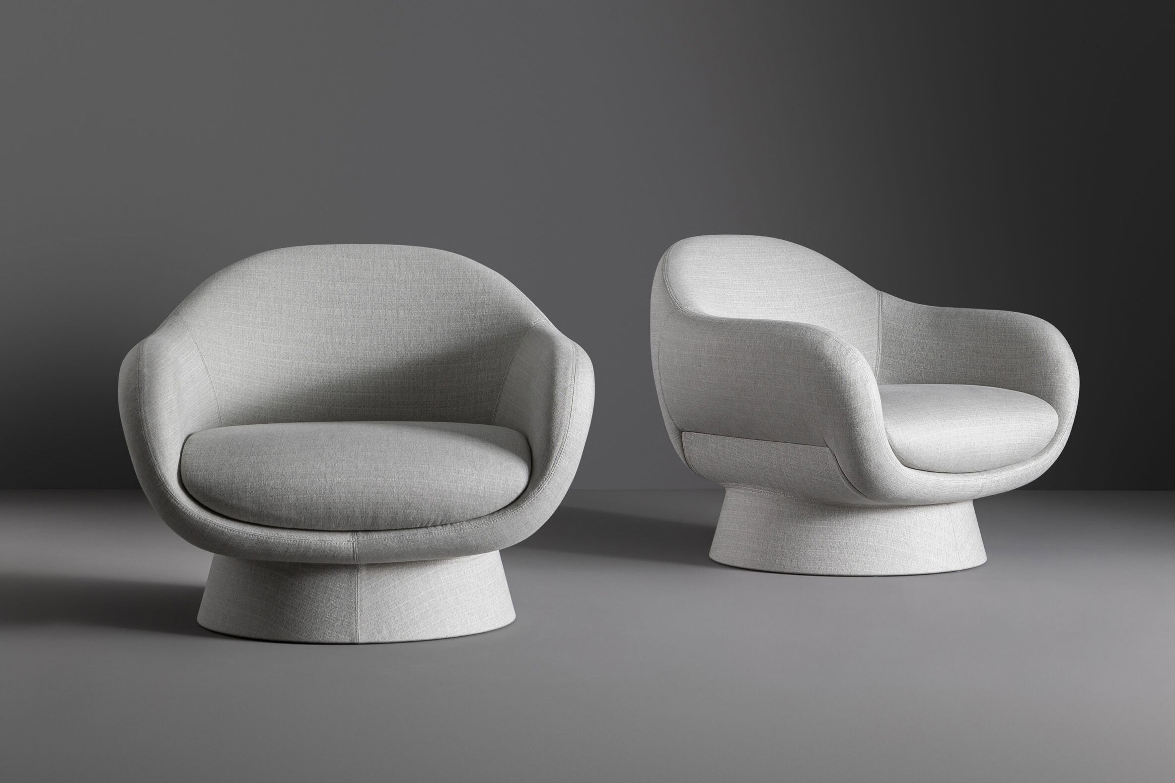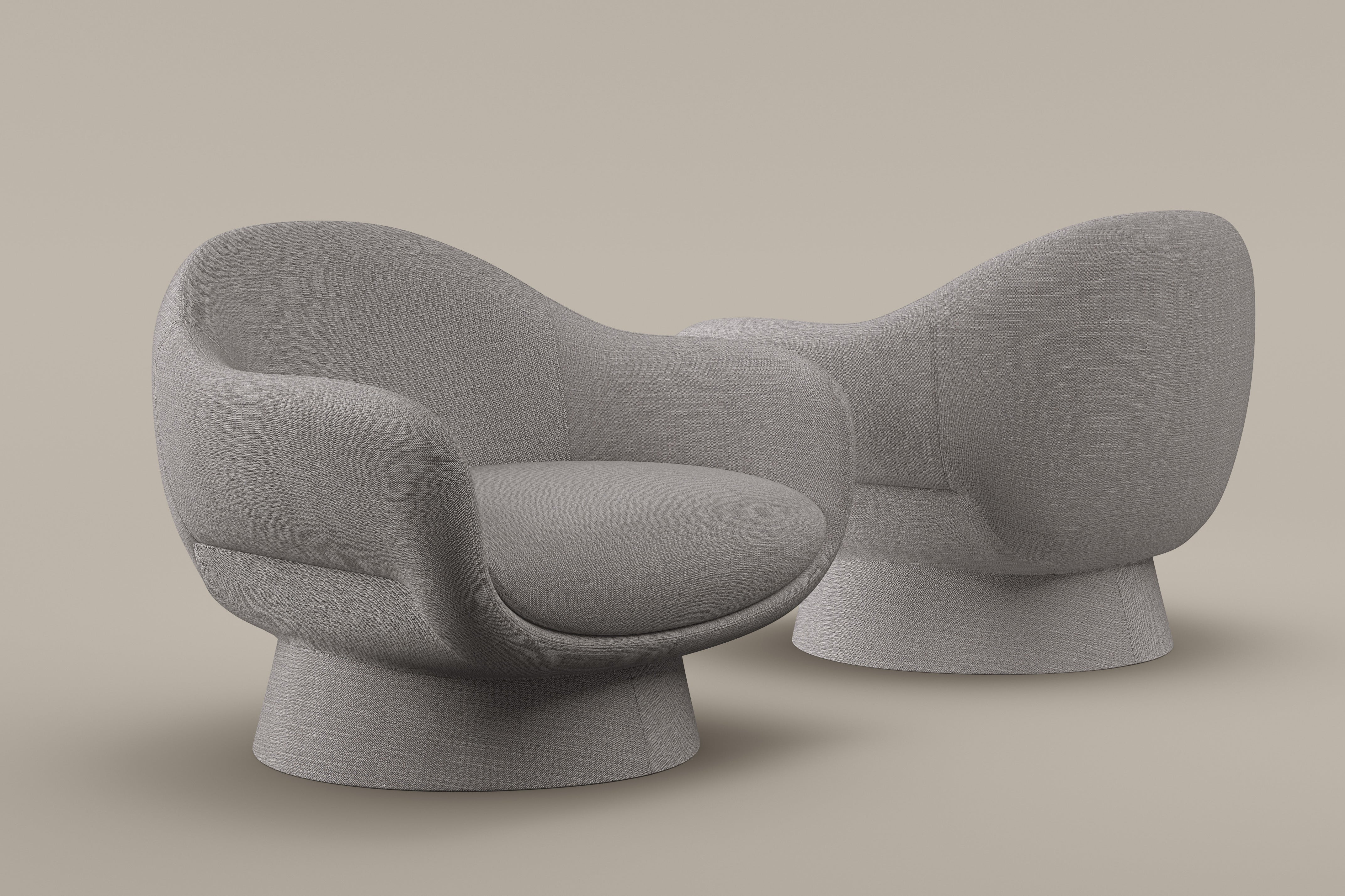 The Boolean armchair introduces a new version with a fully upholstered base, available in both fixed and swivel configurations, offering greater flexibility and personalization for contemporary interiors. This modern upholstered armchair preserves the defining elements of the original design, including its soft curved profile and sculptural silhouette, which give it a clear and recognizable identity. Its inviting form makes it equally effective as a statement piece or as a complement to a sofa, creating continuity in a living room, study, or bedroom setting. The closed base enhances its architectural presence while maintaining visual balance and comfort. With its refined proportions and tactile appeal, the Boolean armchair embodies the thoughtful balance of form and function characteristic of Italian furniture design, making it an adaptable and enduring addition to any modern space.