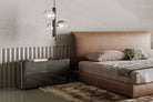The Arragan drawer chest and bedside table, designed by Gabriele and Oscar Buratti, express the same sculptural clarity that defines the Arragan collection. Both pieces translate architectural balance into essential volumes with smooth, continuous lines and precise proportions. The chest of drawers features three spacious compartments, while the bedside table is offered in two sizes, one in a compact format and another in a more generous American style. Slightly elevated on low feet, both pieces convey visual lightness and structural harmony. Available in gloss or matt painted finishes, the surfaces interact with light to reveal depth and subtle reflections. A recessed top functions as an integrated tray, while the tapered door detail serves as a discreet handle that highlights the purity of the design. Ideal for bedrooms and refined living spaces, the Arragan drawer chest and designer bedside table balance presence and restraint, offering a versatile solution that complements both minimalist and more decorative interiors.