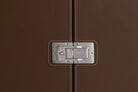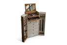 A piece of furniture with exotic charm, wild at heart and rigorous in form. The hide cladding, the handles with the same finish, the tailored stitching and the functional yet decorative clip to fasten the piece make it an accessory that brings style to every corner of the home. Frame in italian walnut. Linen matt lacquered inner frame. External cover, handles, inner drawers and pull out shelf covered in hide. Equipped with lift-up mirror for make up , hooks to hang belts and side storage compartments. Tray set on demand composed by: dresser valet, ring holder and watch holder. Closing clip in satin nickel.