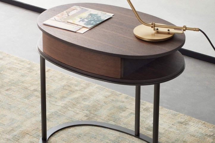 Sophisticated and versatile iconic piece Designed for the bedroom area, it also fits into other rooms, enhancing lounges and social spaces. The Ortis coffee table is distinguished by its sophisticated metal tube structure anchored to semi-circular plates at the base, combined with an oval top, available in glossy, matt lacquered finish or wood.