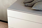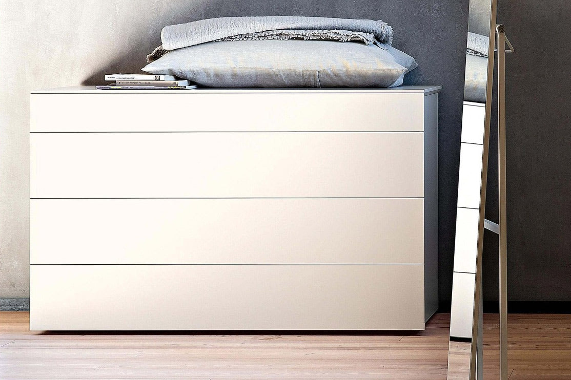 Bedroom system with simple forms and rich detailing Another product of Officinadesign Lema ongoing research activities, Quarantacinque is a collection of elegant bedroom containers - featuring a side table and chest of drawers - whose name is inspired by the sophisticated 45° joints used in the pieces. Available with a matt lacquered finish, Quarantacinque stands out from the crowd on account of its minimalist, modern style. The embodiment of the Lema design philosophy, Quarantacinque represents an example of the possibilities when you combine artisanal furniture-making with contemporary industrial production techniques. Decorative and functional all at once, the Quarantacinque containers work well in any space.