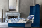The Basket bed is designed by calibrating large shapes with soft, enveloping lines. This is a double bed covered in fabric, leather or eco-leather, completely removable. There are many variations to the design: in addition to Basket, the Basket plus model, featuring sophisticated tucks on the headboard; Basket high, which displays the sophistication of the volumes, thanks to the more imposing headboard; Basket air, the lines of which are slender in the painted metal feet; Basket air plus, with metal feet and headboard adorned with tucks are all available. The Basket, Basket plus and Basket high are also made in the “open” version: the practical unit enables precious additional space to be gained for storing covers, cushions and everything necessary for the bedroom.