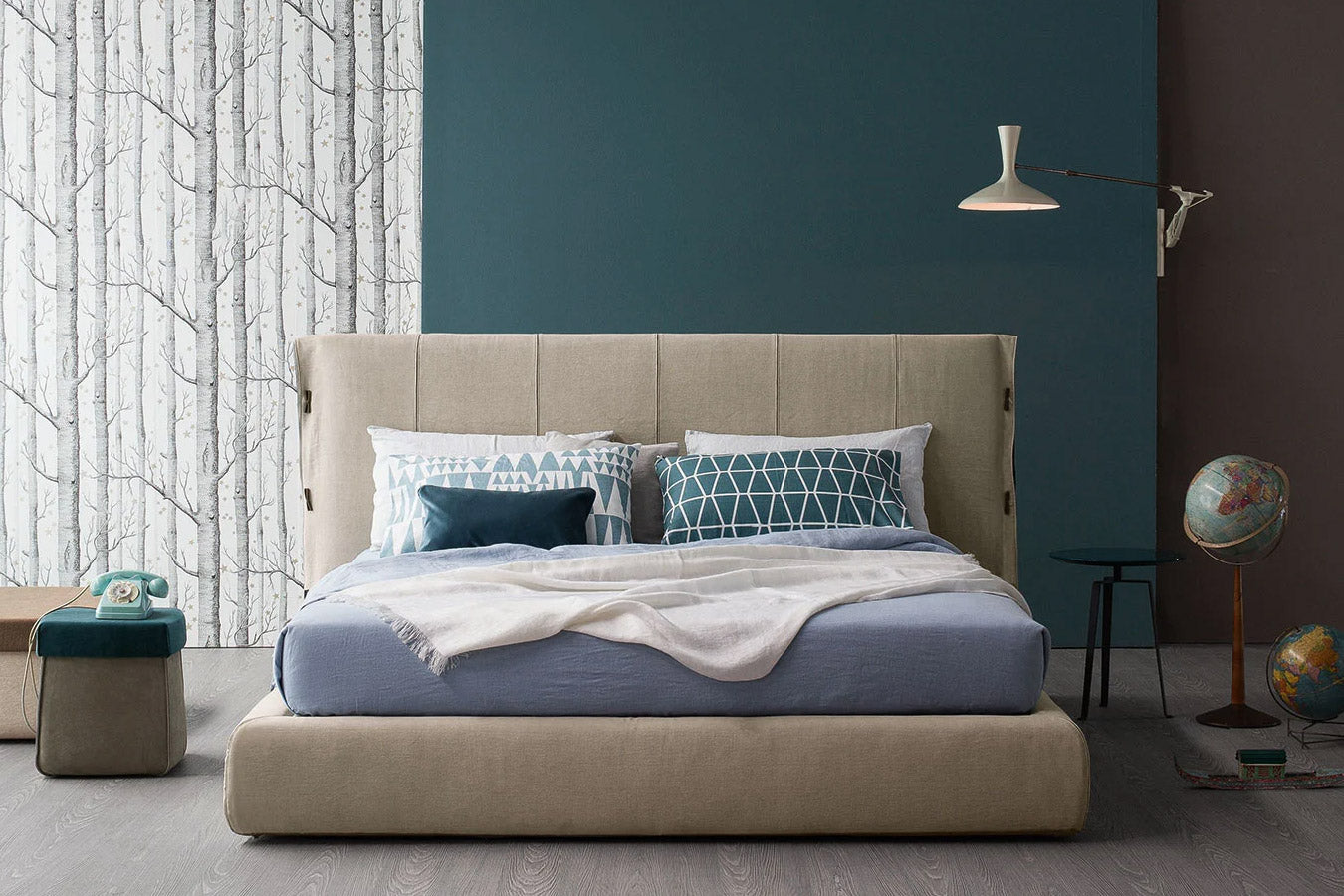 Cuff, available in double or single versions, is a bed made elegant by the precious details that characterise it: the frog fastenings dotting the two flaps of the padded headboard, the pleating that runs vertically, the leather inserts that also enrich the bed frame, the painted metal feet in sophisticated hues. Available with completely removable cover in fabric, leather or eco-leather, Cuff is produced in various versions: with higher headboard (Cuff hi), with thicker bed frame, low feet in painted wood and low (Cuff plus) or high (Cuff hi plus) headboard. In the versions with storage (Cuff open and Cuff hi open), precious additional space can be gained for storing covers, cushions and everything necessary for the bedroom. The Cuff easy open and Cuff hi easy open versions are furnished with a convenient storage space and also a double-action mechanism that allows the bed surface to be completely raised to facilitate making and cleaning the bed.