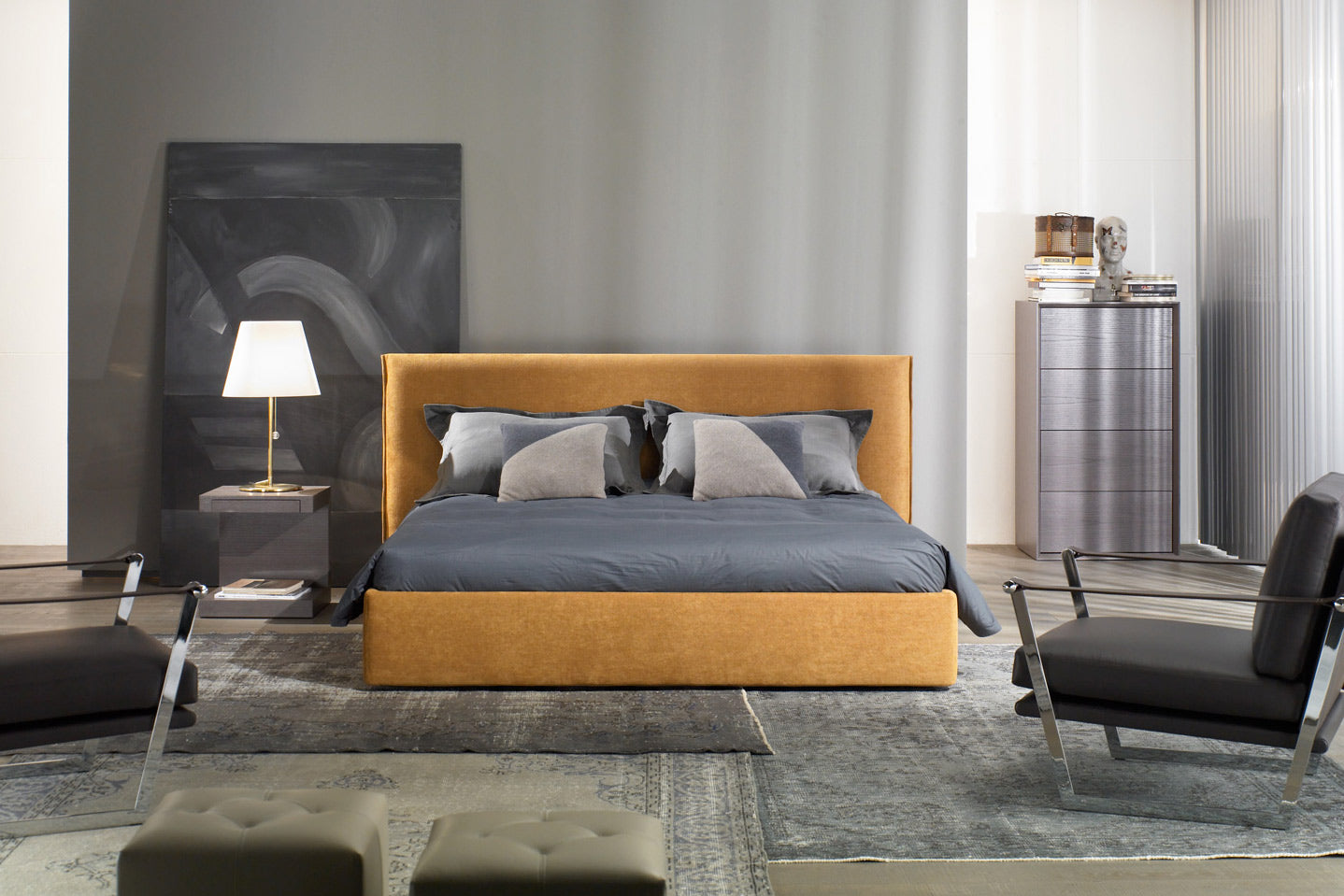 Jersey is a bed with clean and simple lines. The thinness of the headboard as well as the frame allows it to be adapted to modern interiors where space is limited. It comes with a levelling system in order to adjust to the different sizes of slats and mattresses. The upholstery is completely removable and almost all parts can be detached.