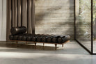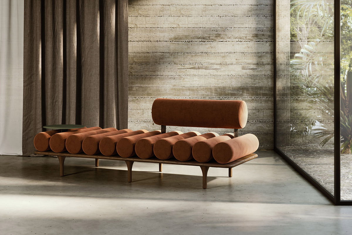 The daybed can also be used at home as a guest bed, thanks to a special linen-upholstered, softly padded mattress that, when placed on the bolster pillows, transforms the seat into a real sleep oasis. By applying the Japanese lifestyle philosophy to the new needs of the contemporary home, the mattress is a removable accessory that allows an increasingly versatile use of home furnishings.