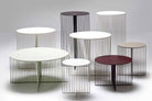 The work of the blacksmith has been made as light as air. The Accursio tables transcend the conventional heavyweight image of steel thanks to their ethereal forms, which conceal their stability and solidity. Above the cross-shaped bases are round, square and rectangular tops that can be juxtaposed in iconic Mondrianesque compositions.