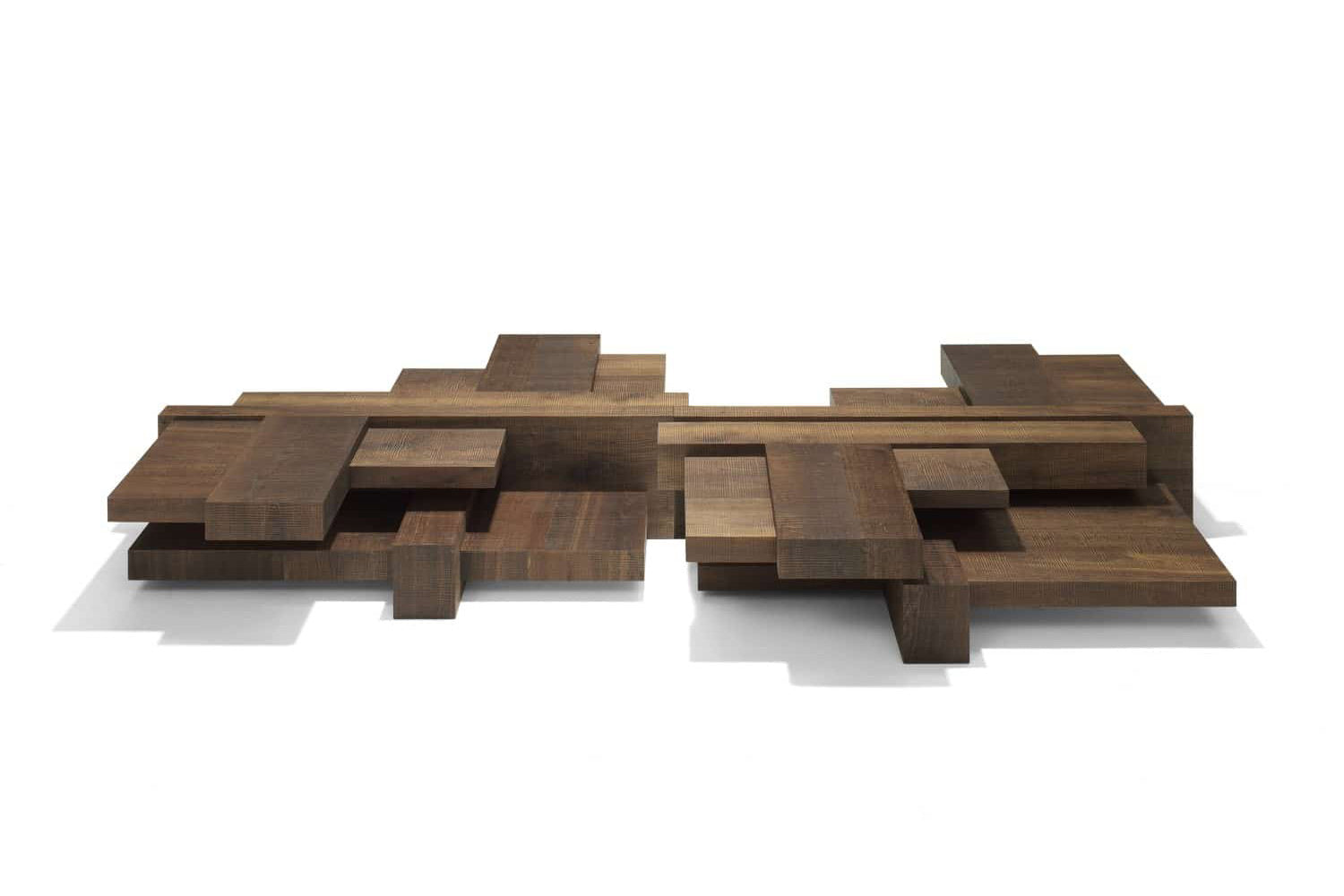 The ‘Manhattan’ coffee table by Dutch designer Roderick Vos defies ‘traditional’ table typology with its composition of wooden blocks and empty spaces, inspired by Piet Mondriaan and Russian Constructivism. This low oak table is beautiful and striking and, in fact, extremely practical. ‘Manhattan’ embodies that well known phrase: a place for everything and everything in its place. The natural cracks, knots and colour variations of the wood add to its robust appeal.