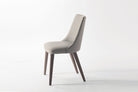 The Eva chair associates wraparound lines with dynamic versatility of use. The structure is in solid ashwood stained Rovere or Noce, with brackrest in curved birch plywood, and non-removable cover in fabirc, eco-leather or leather.