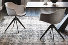 Soft polyurethane armchair with different bases. Fix or swiveling base in titanium, graphite, white or black embossed lacquered steel or in natural beech, Canaletto walnut or burned oak stained beech, or with 5 spokes in polished aluminum, or with wheels in black painted aluminum. 4 spokes base in graphite, white or black nylon available in swiveling version and on wheels. Seat and back in monochrome polyurethane available in white, lino, fango, petrolio or antracite colors, or two-tone polyurethane back petrolio and front fango. For supplies of more than 50 pieces other colors are available. Fireproof seat 1 IM - CRIB5.