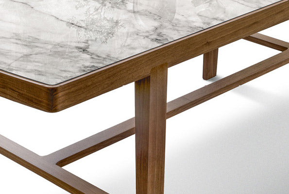 The art of carpentry is fully expressed in the play of horizontal and vertical grains that forms the structure of the table. The precious marble top and woodwork provide truly Italian elegance. The thickness of the frame turns Convivio into an 'impressive' item of furniture that plays the starring role in the dining room while encouraging sociability.
