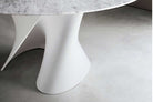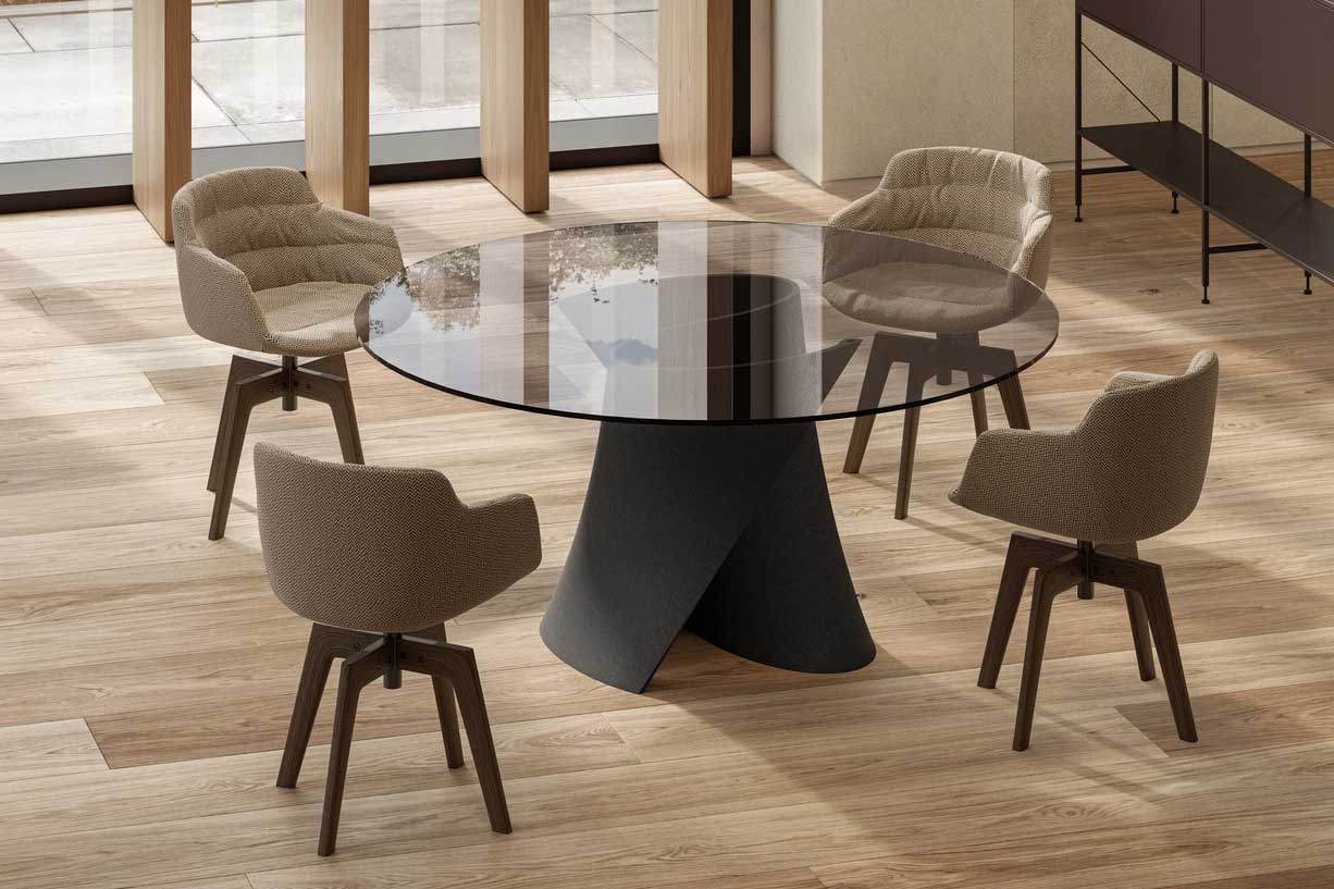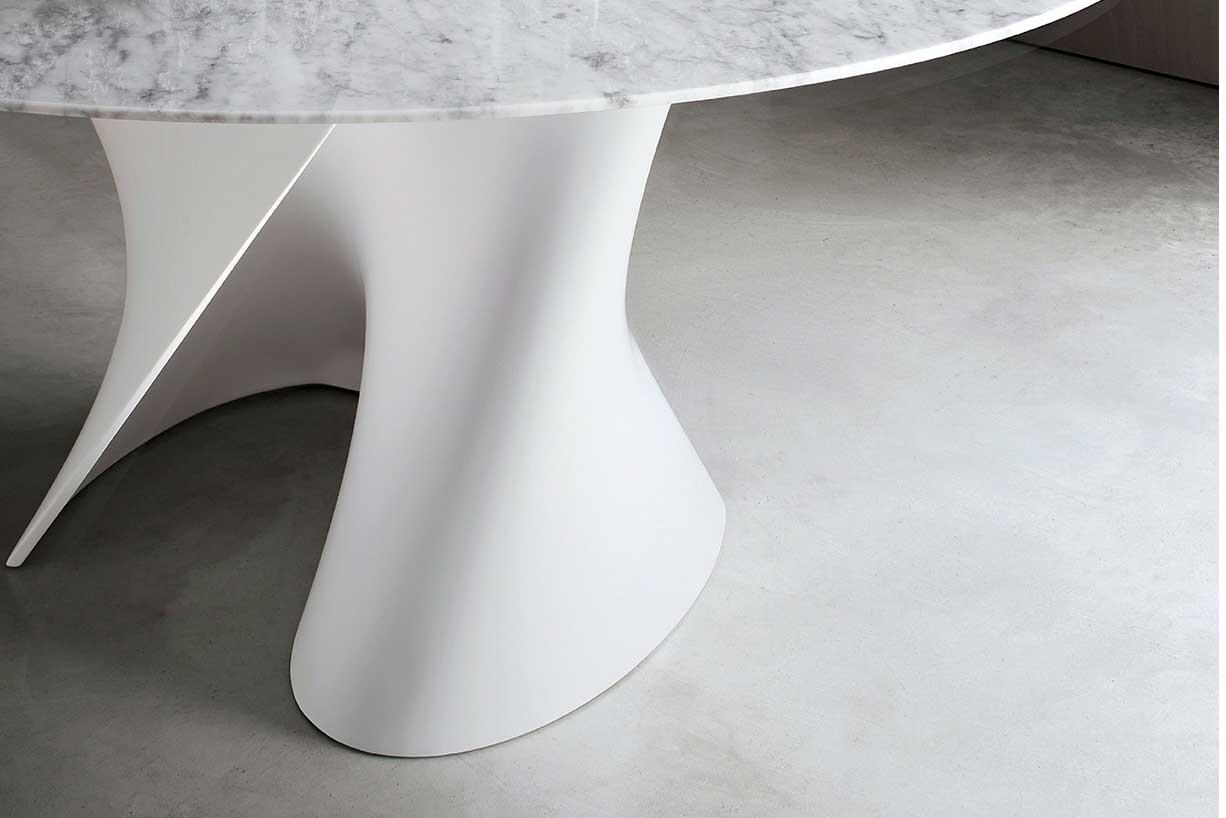 The stand, moulded either in Ceramilux or in Cristalplant, technologically advanced, hypoallergenic and non-toxic material, can be crowned by different types of top – in crystal, in wood fiber, marble or in in Cristalplant – to further customise an already unique object.