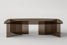 Table with a tempered glass top available in extra clear, smoked, or bronze finishes, presented in both round and rectangular versions as well as shaped variations of the same forms. The base is composed of carefully combined glued glass elements in matching finishes of extra clear, smoked, or bronze, creating a transparent structure that reveals craftsmanship and material precision. This modern glass table expresses balance, lightness, and clarity, making it a natural choice for contemporary interiors that value proportion, transparency, and refined design.