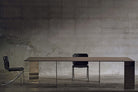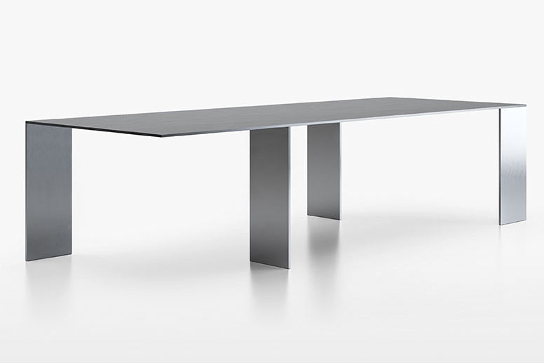 The internationally-awarded duo has created a unique table with four slim legs unusually placed at 90 degree angles, resulting in optical effects ranging from near weightlessness to firm stability, while permitting flexible seating arrangements.