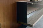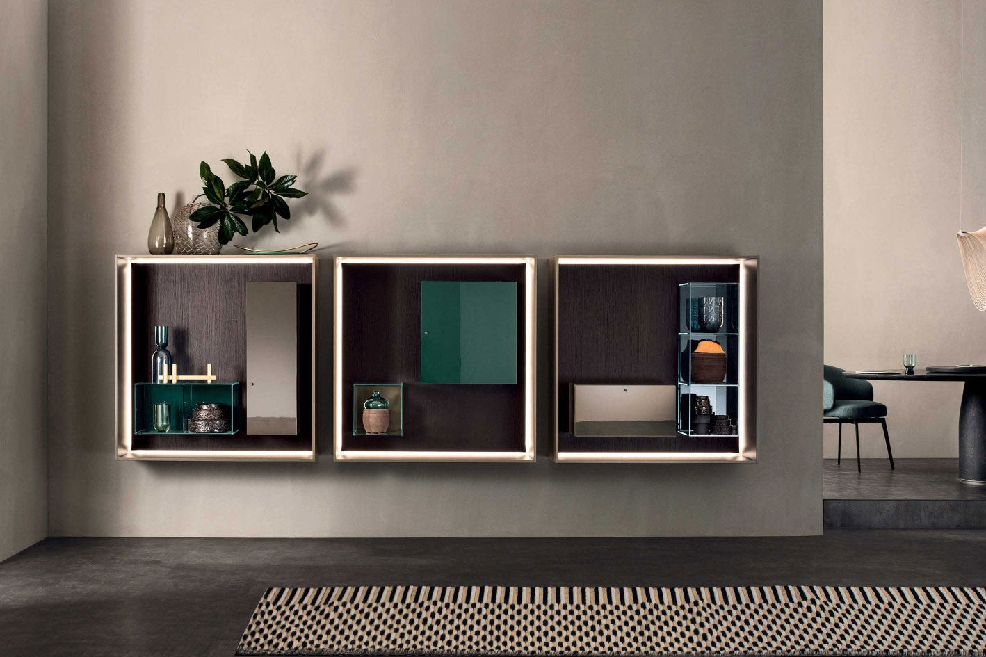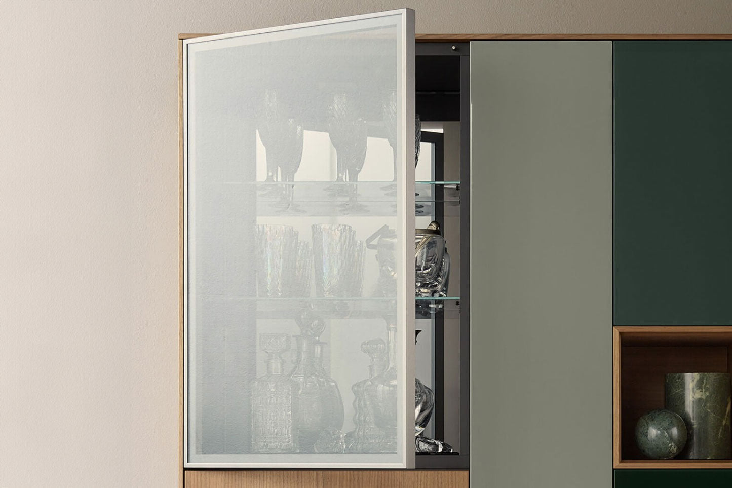 LT40 is a fully customisable modular system of containers and wall elements available in four configurations: floor, sideboard, wall-mounted and panelling. Ideal in any room of the house, the four configurations can be liberally combined and supplemented with a series of additional elements: double side containers, benches and storage solutions for multimedia equipment, tops in marble and stone, box containers in wood or glass and an integrated LED lighting system. Also available with the push and pull opening further enhancing the pureness of its essential lines.