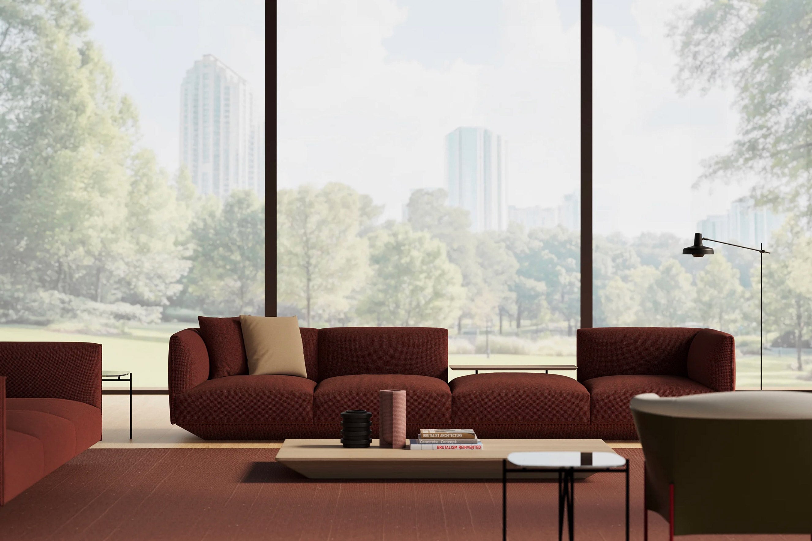 Aire brings a sense of spacious ease with its elevated base, sculpted volumes, and quiet geometry. Designed for comfort through openness, it adapts to various interiors with graceful presence. Its tapered base creates a levitating effect, while modular elements - deep seats, low armrests, and side tables - enable flexible compositions. Aire unites Mediterranean lightness with refined craftsmanship for homes, lounges, and elegant commercial spaces.