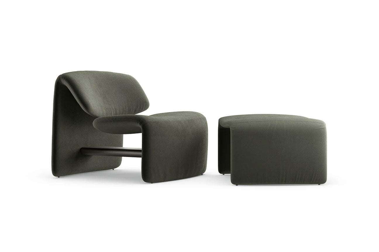 Designed with two independent curved elements for the seat and backrest, the structure follows the body’s natural posture, providing support through a soft and fluid design.