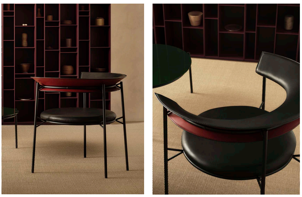W 29 3/4” x D 25 1/4” x H 28” Stucture: Matt painted graphite grey X054 Cover: Anilina R701 col. 4301 Rear backrest: Cuoio 26