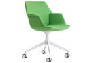 Family of chairs with height adjustable or fixed base in die-cast aluminium, either sandlblasted or powder coated, with castors and tilt mechanism. Seat and backrerst in several heights are made of fire retardant polyurethane foam upholstered with fabric, leather or eco-leather. Tilt mechanism is highly suggested for lounge versions.