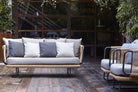 Collection of outdoor seats and tables composed of various elements in varnished aluminum and synthetic fiber rope. Specifically, this is a sofa designed by Giopato & Coombes with unique design, an element that can furnish any indoor environment and outdoor, from the terrace to the living room or the bar.