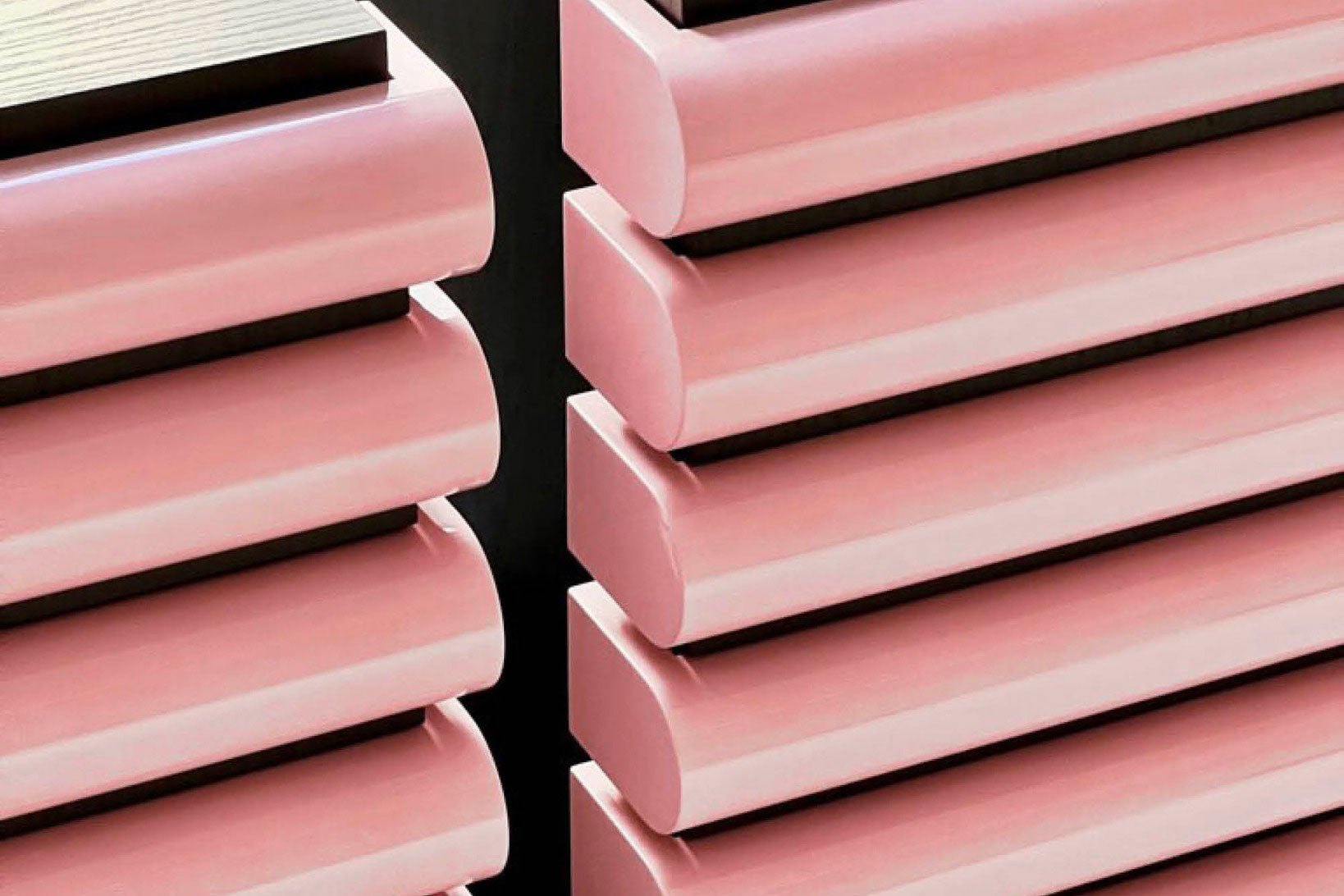 A playful, spirited pillar of drawers, the Storet cabinet epitomizes the visionary touch of Nanda Vigo designs. In both its elongated vertical edition, and in the nightstand designed by Nanda Vigo but manufactured for the first time only now, the Storet reflects today’s advances in production, with the walnut’s visible grain illuminating Acerbis’s modern expertise in utilizing extensive wood surfaces. The furniture’s key element is the drawers’ moulding, and it is available in glossy lacquered black, white, SW white, linen, sand, clay, burgundy, pink, dark green, mustard yellow, brick red and navy blue.