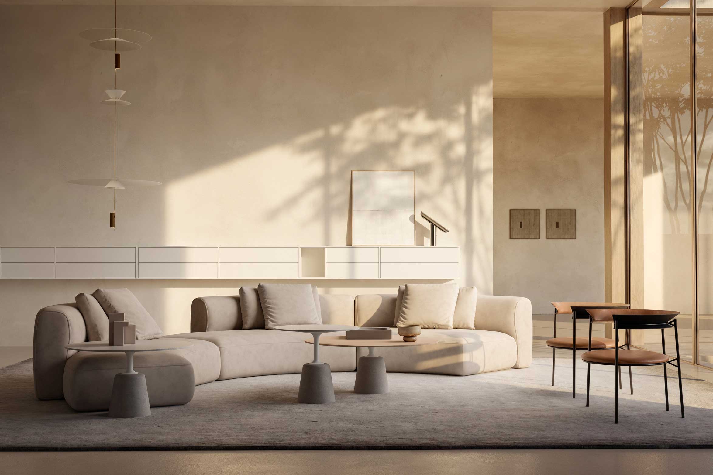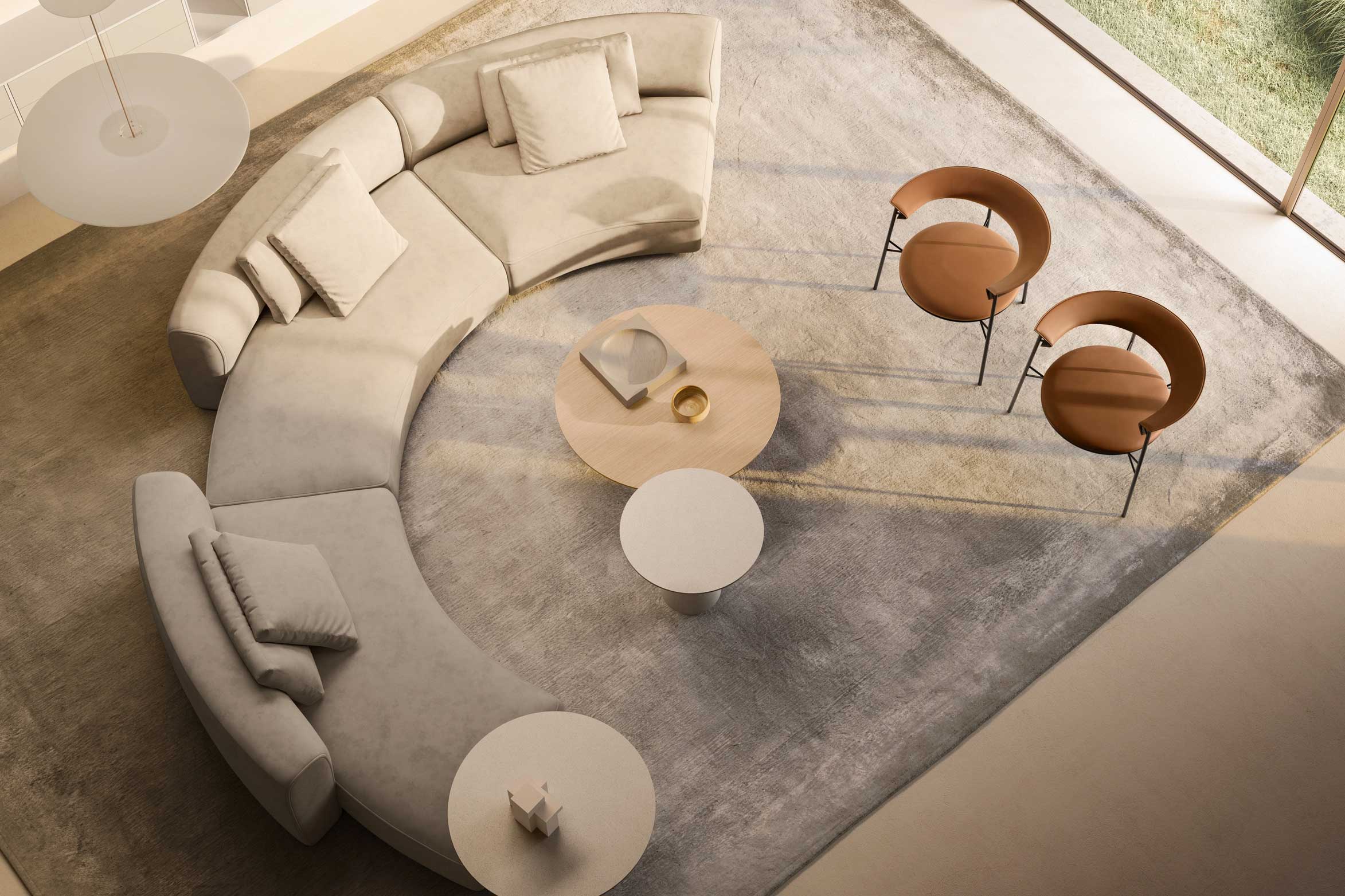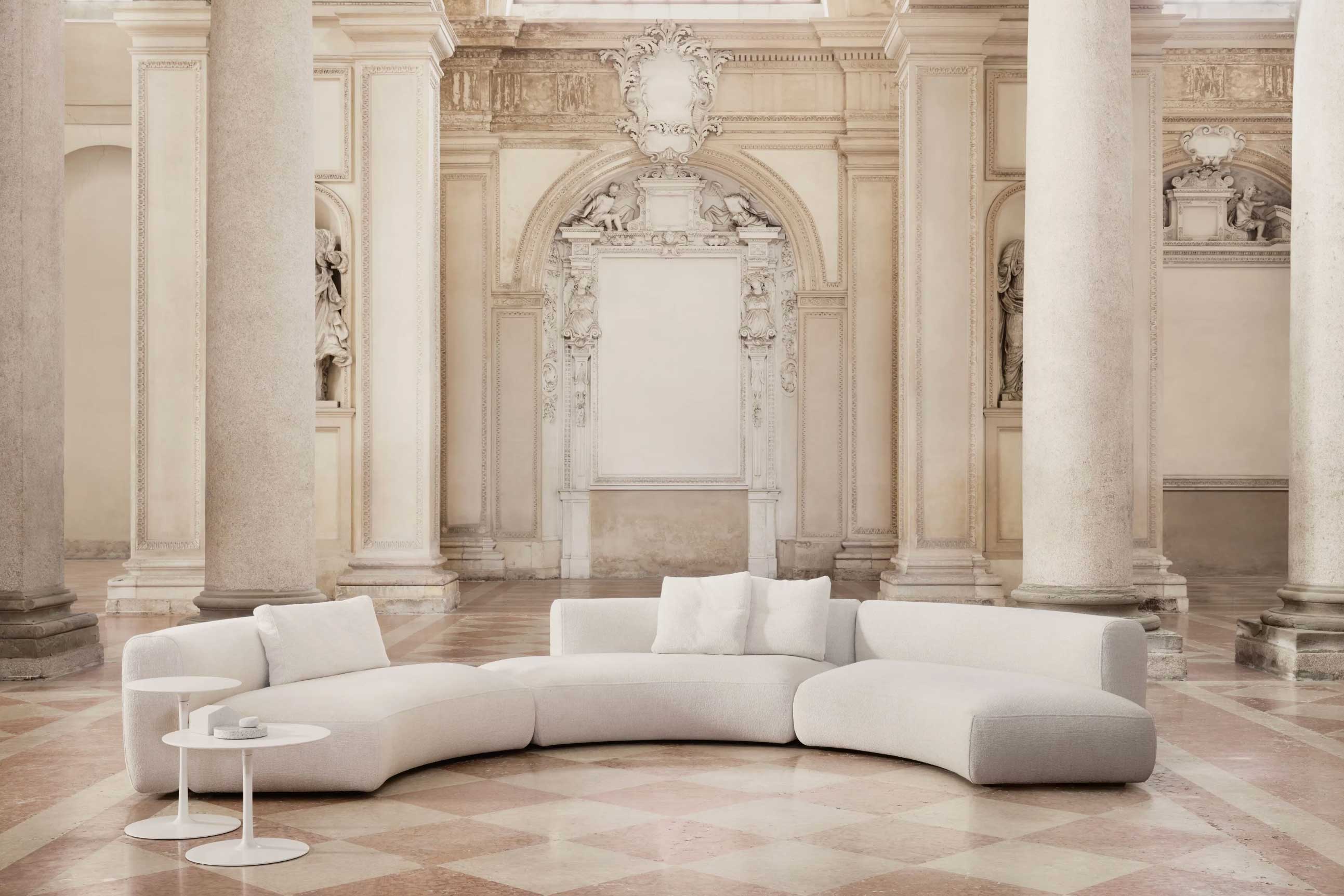 The Cosy Curve sofa designed by Francesco Rota is characterised by its curved base and backrest, which are ideal for creating convivial atmospheres thanks to their harmonious and welcoming shape. Designed to be the natural focus of fluid spaces in the modern home, its sinuous proportions and curved line offer a pleasant feeling of cosiness and comfort.
