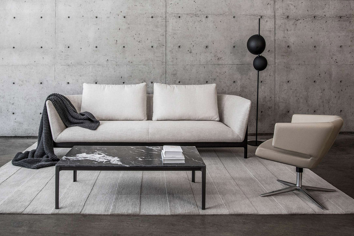 Loft appears to float above the ground. With its discreet silhouette, the Loft sofa does not overpower a space. Available with either a wood or metal frame.With a floating frame and elegant legs in either chrome, bronzato, or wood, the Loft sofa is a clean and tailored classic that invites you into its embrace. Thanks to the exaggerated look of the legs and the simplicity of the integrated seat cushion, this sofa is a great piece to be used both in residential and contract applications. Available in three standard lengths: 180cm, 215cm or 245cm.