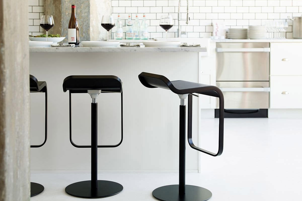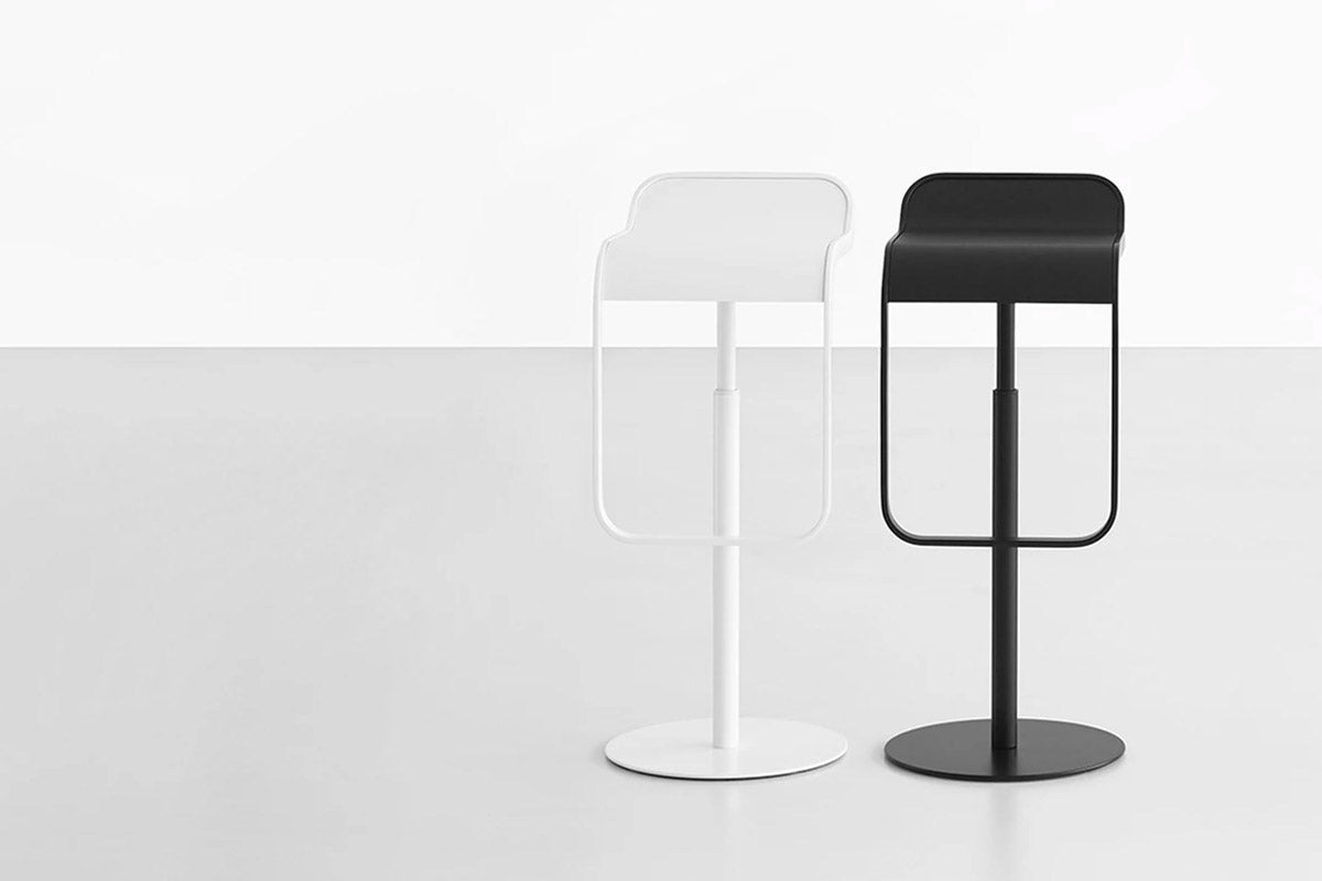An iconic stool. The lines of its closed, perfect form delineate the minimum indispensable volume, achieving a measured and timeless elegance. An entire family of Lem stools featuring a range of bright colors, and a variety of textures and materials has now been developed on the basics of the initial concept. A versatile Lapalma classic for the contract segment, used widely for a broad range of requirements. Stool with fixed or adjustable height with swivel seat. Frame of mat chromed steel, with base covered by a stainless steel sheet with linen fabric pattern or entirely white or black powder coated. Also available in a variety of other colors. Seat in several finishes and heights. Adjustable or fixed height available.
