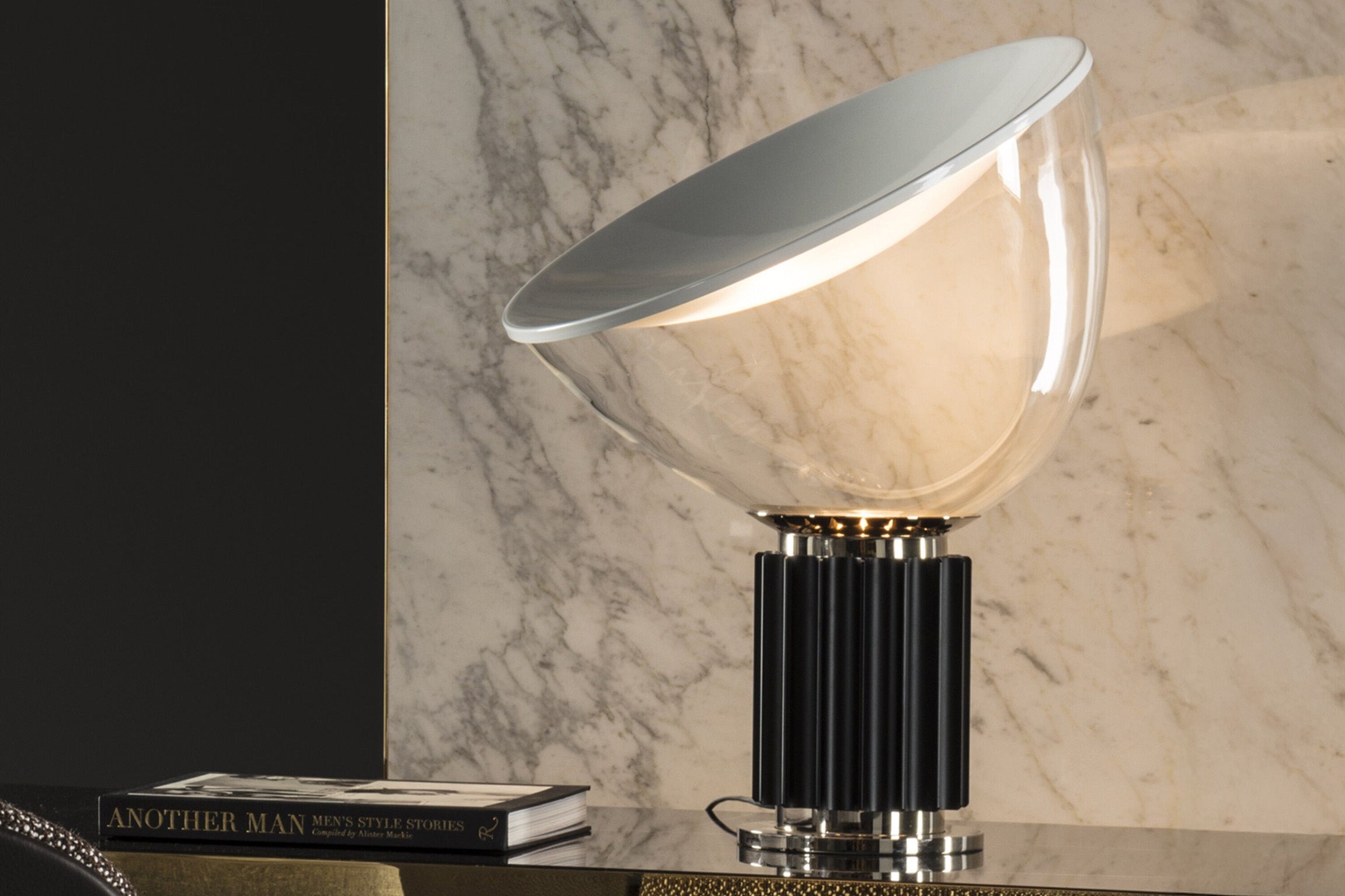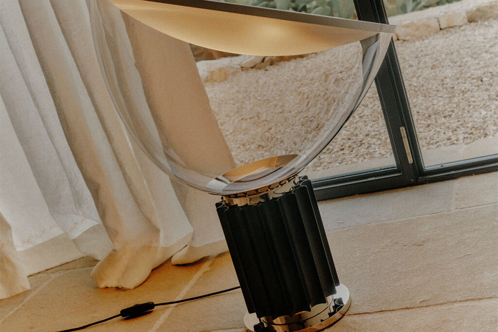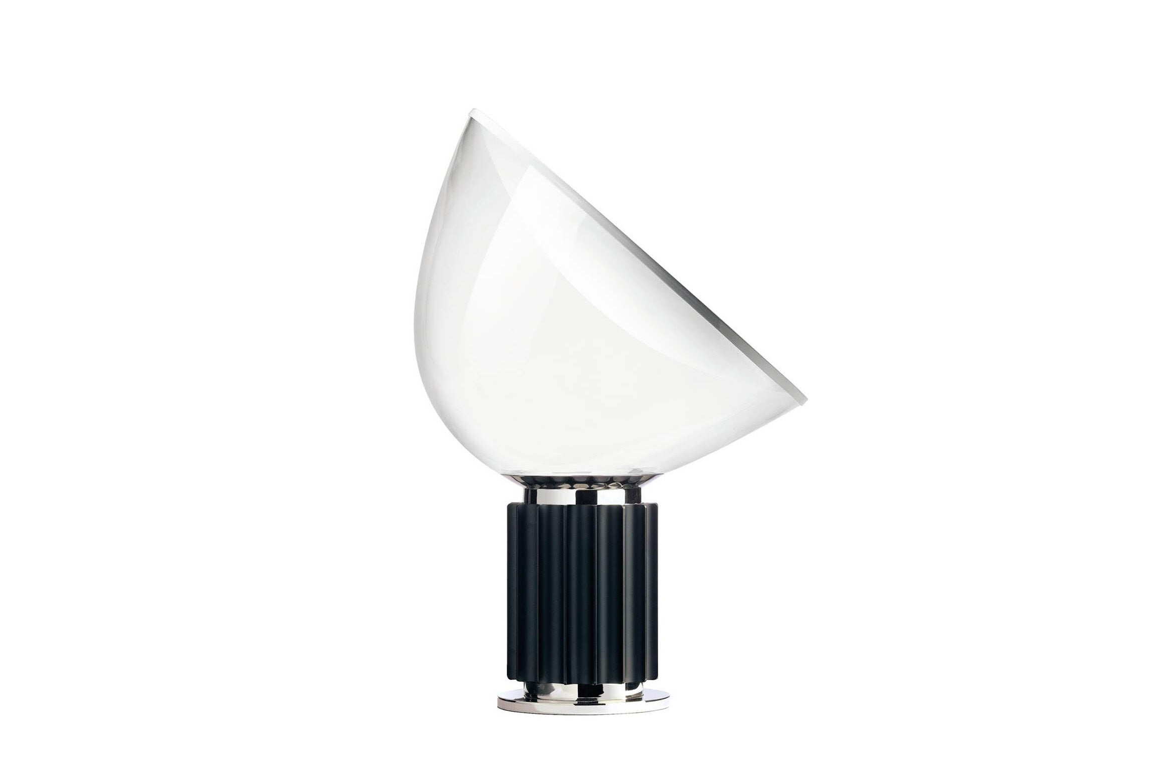 A FLOS classic. The Castiglioni brothers often created designs that challenged our perspective, and the Taccia, which gives the illusion of an upside-down hanging lamp, is an inspired example of that. Designed by the famed duo in 1962, the iconic Taccia has a concave spun aluminum reflector with a matte white finish. Its light can be manually adjusted by positioning the blown glass diffuser as necessary. This designer table lamp's base is made of extruded aluminum and is available in an anodized matte black or natural sandblasted finish. Taccia LED Table Lamp dimmable with glass diffuser emits reflected light. This contemporary adjustable table lamp is available in black/anodized aluminum and has two options for its light source: HSGSR or a remote phosphor LED Inspiration behind the design: Their industrial backgrounds are evident in this design, a shining example of the way Achille and Pier Giacomo Castiglioni applied a minimalist approach to refurbishing everyday objects.